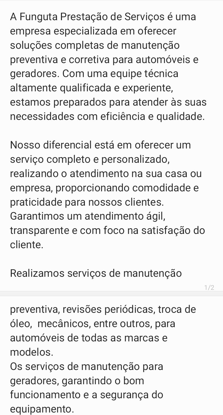 A Funguta auto é uma empresa especializada em oferecer soluções completas de manutenção preventiva e corretiva para automóveis e geradores. Com uma equipe técnica altamente qualificada e experiente, estamos preparados para atender às suas necessidades com eficiência e qualidade.